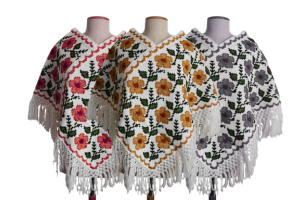 Chal bordado con hilos de colores vibrantes, reflejo de la paciencia y creatividad de las manos que lo confeccionan.